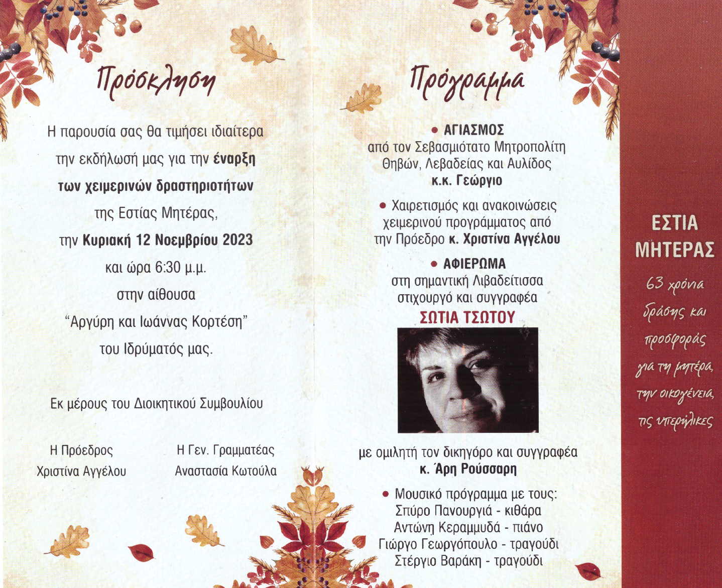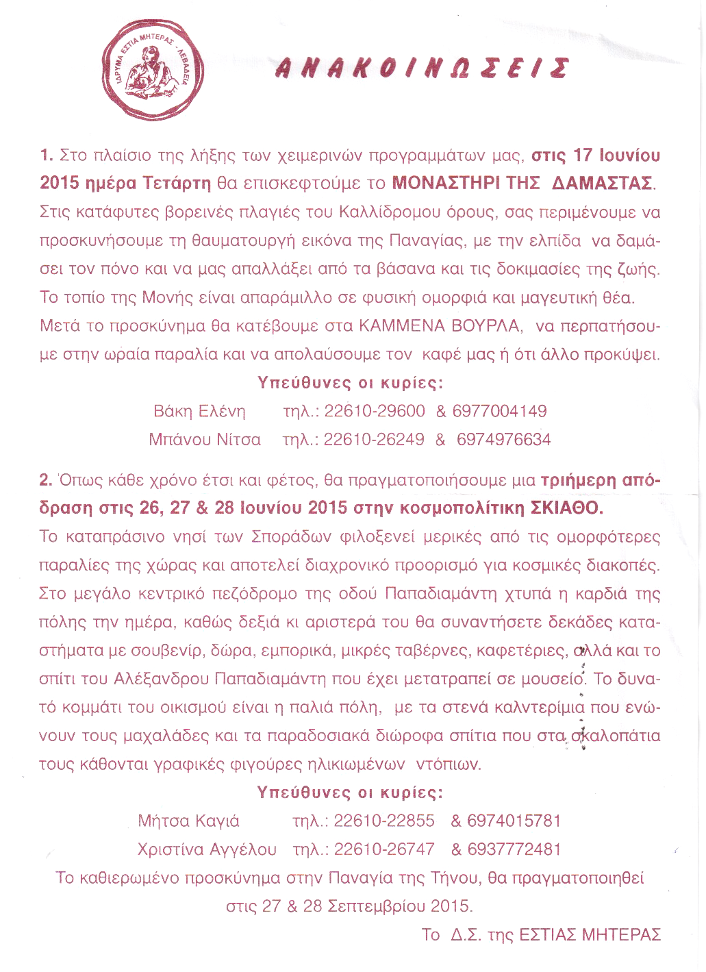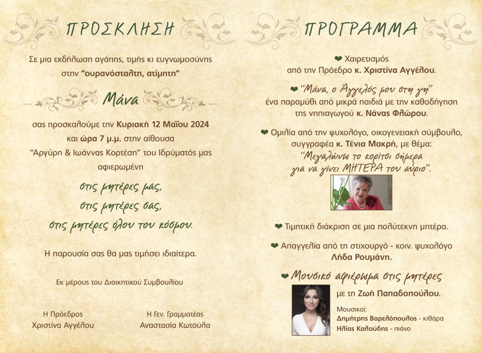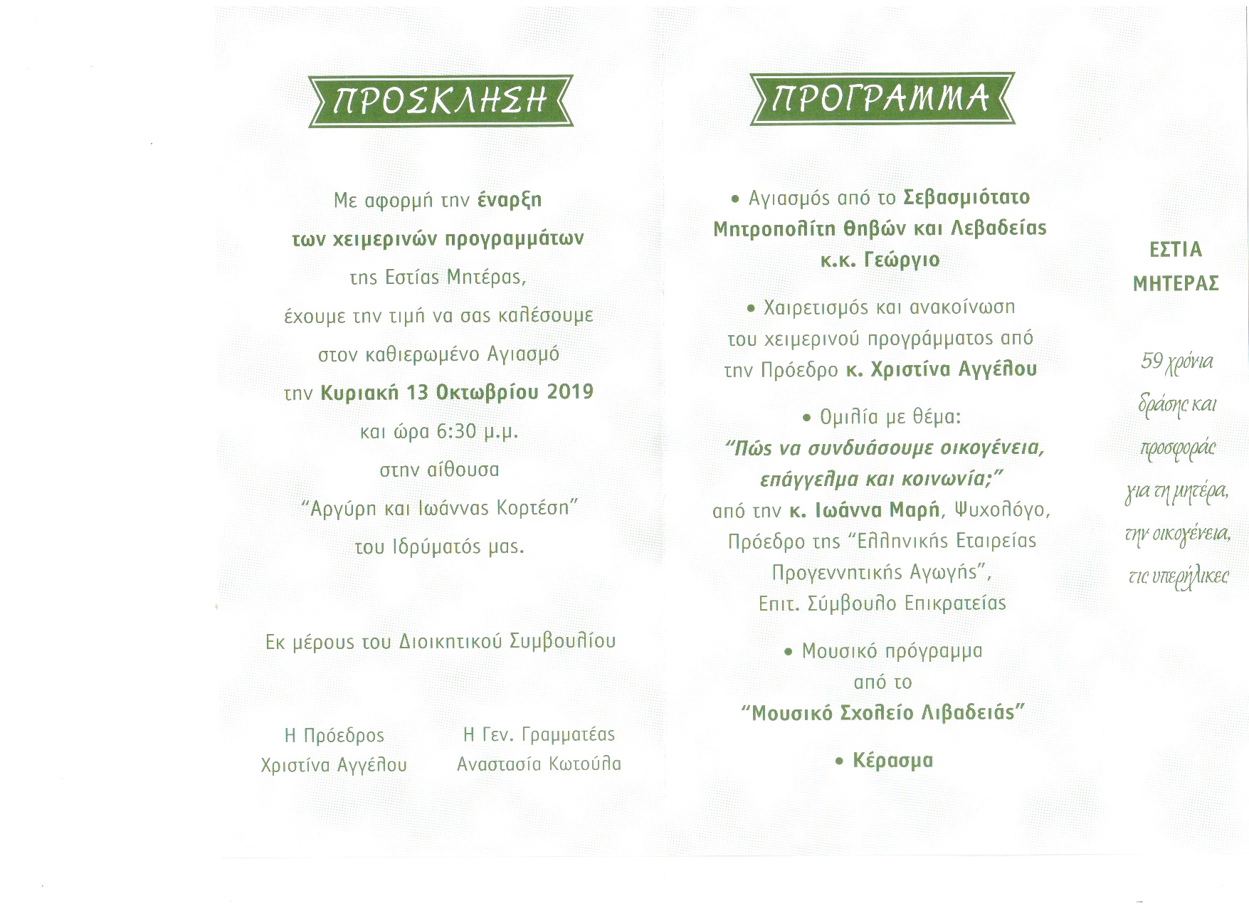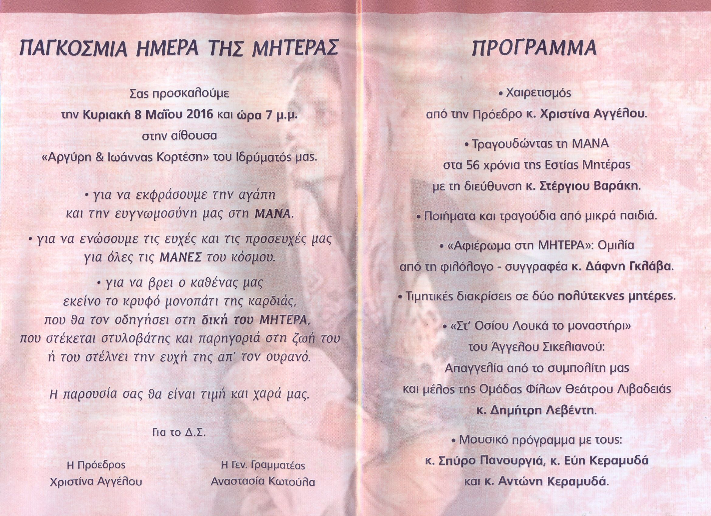 | Η ιστορία μας | ΠΑΛΑΙΟΤΕΡΕΣ ΕΚΔΗΛΩΣΕΙΣ Παρακάτω βλέπετε, μέρος από τις ανακοινώσεις από τις παλιότερες εκδηλώσεις της Εστίας Μητέρας, χωρισμένες ανά χρονιές |
