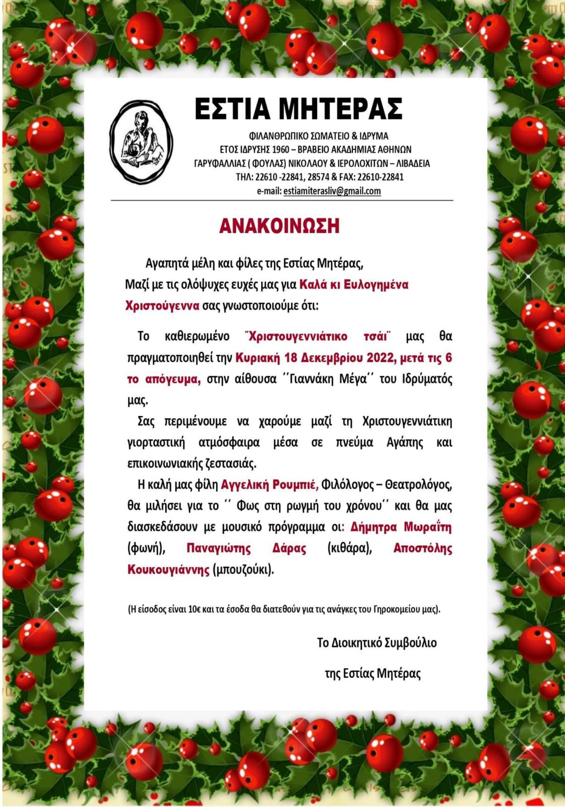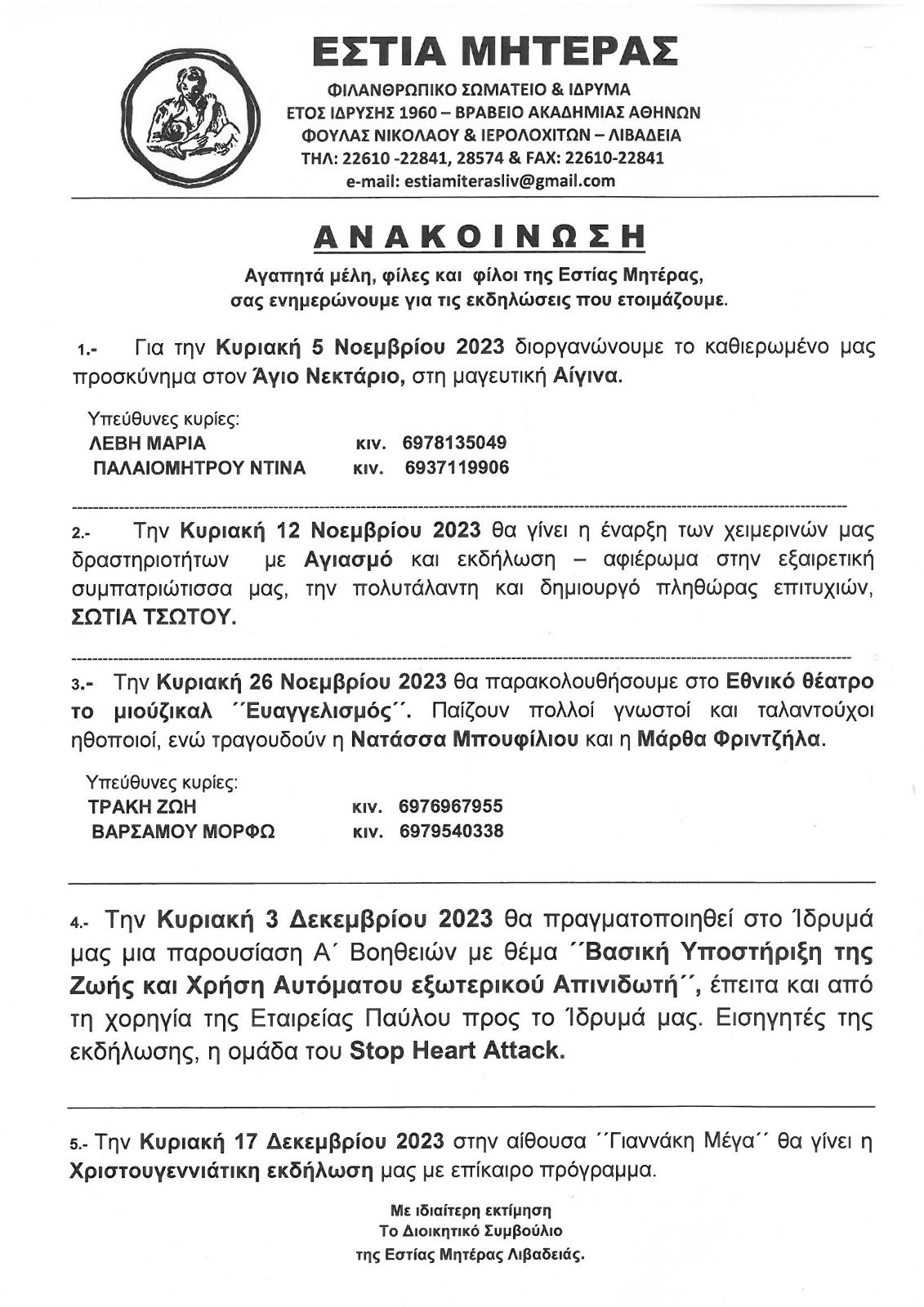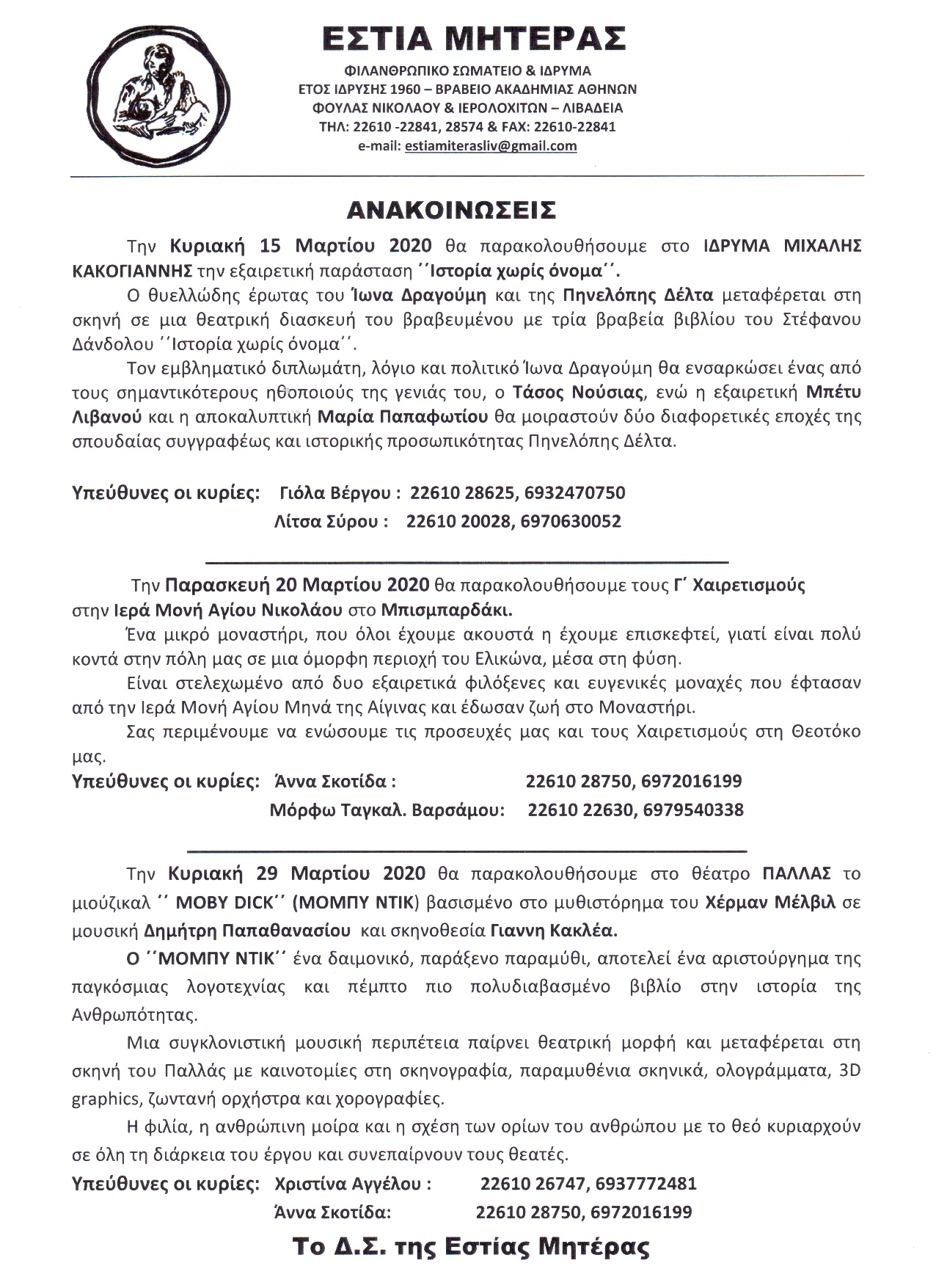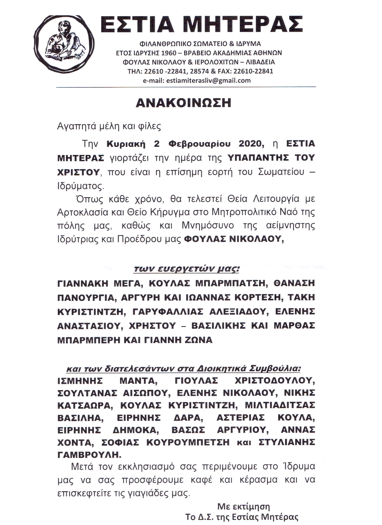 | Η ιστορία μας | ΠΑΛΑΙΟΤΕΡΕΣ ΕΚΔΗΛΩΣΕΙΣ Παρακάτω βλέπετε, μέρος από τις ανακοινώσεις από τις παλιότερες εκδηλώσεις της Εστίας Μητέρας, χωρισμένες ανά χρονιές |