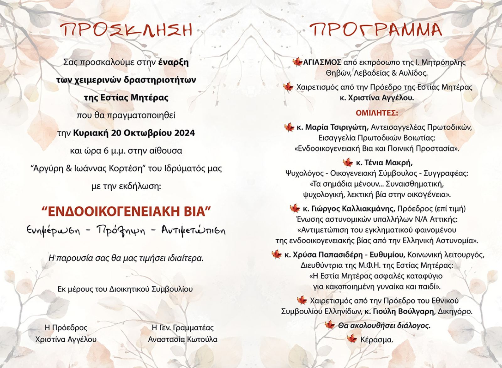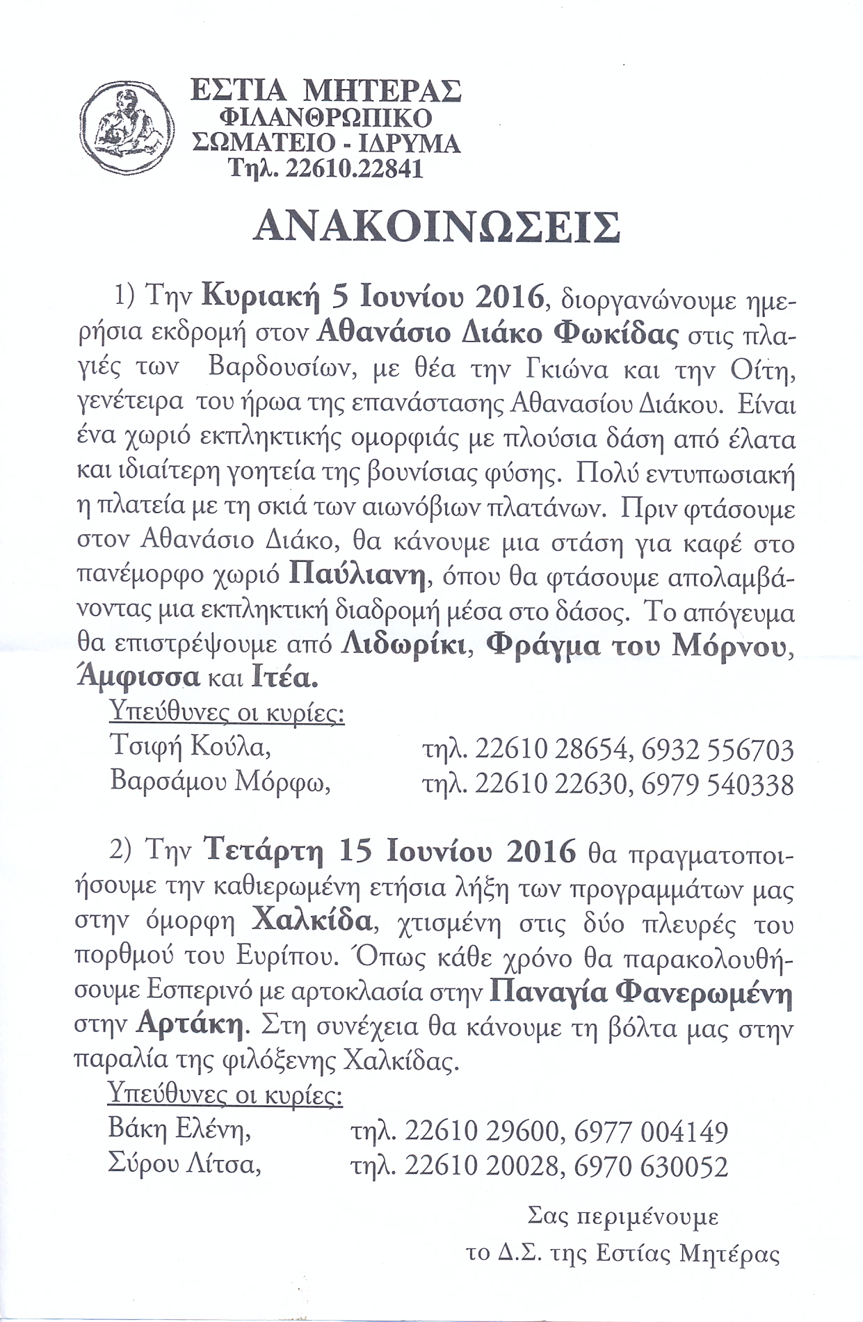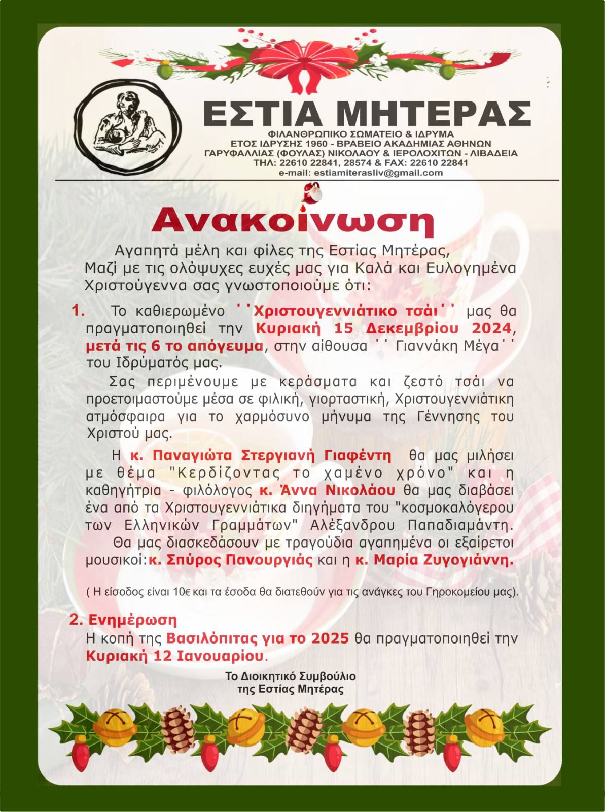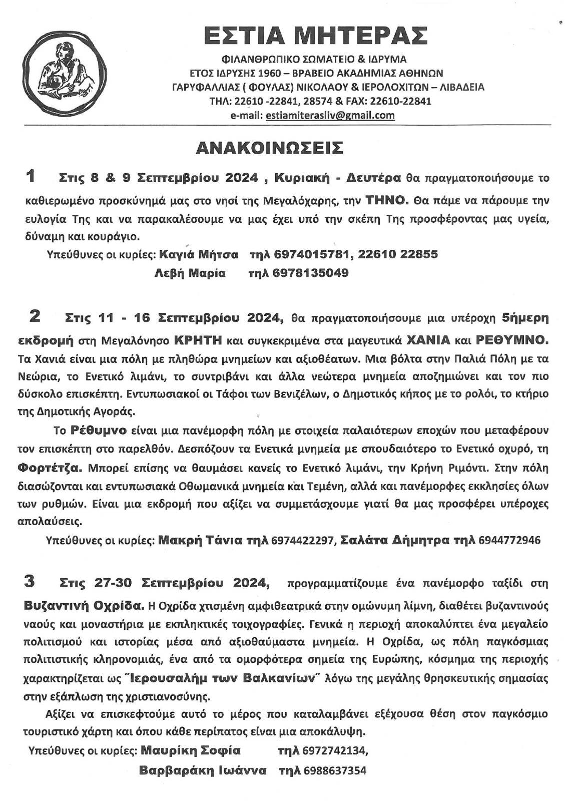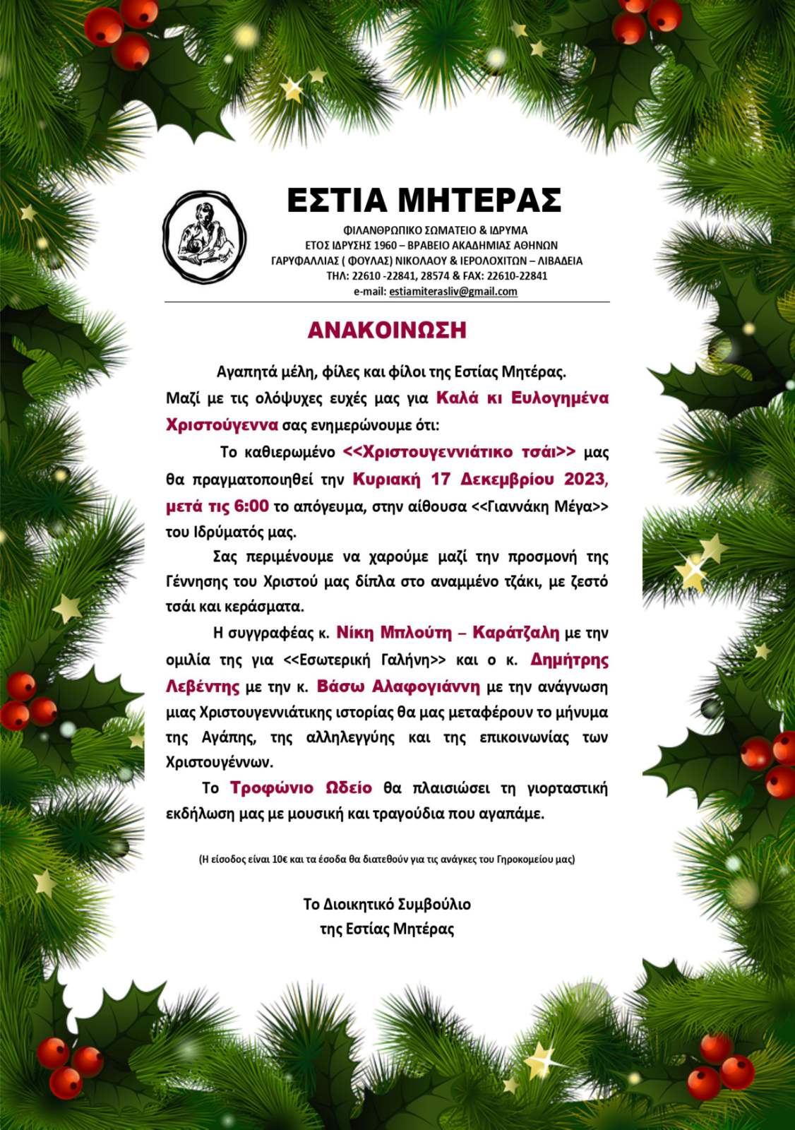 | Η ιστορία μας | ΠΑΛΑΙΟΤΕΡΕΣ ΕΚΔΗΛΩΣΕΙΣ Παρακάτω βλέπετε, μέρος από τις ανακοινώσεις από τις παλιότερες εκδηλώσεις της Εστίας Μητέρας, χωρισμένες ανά χρονιές |