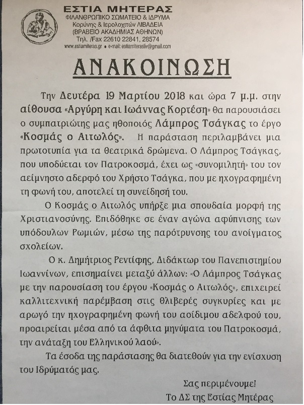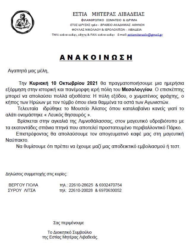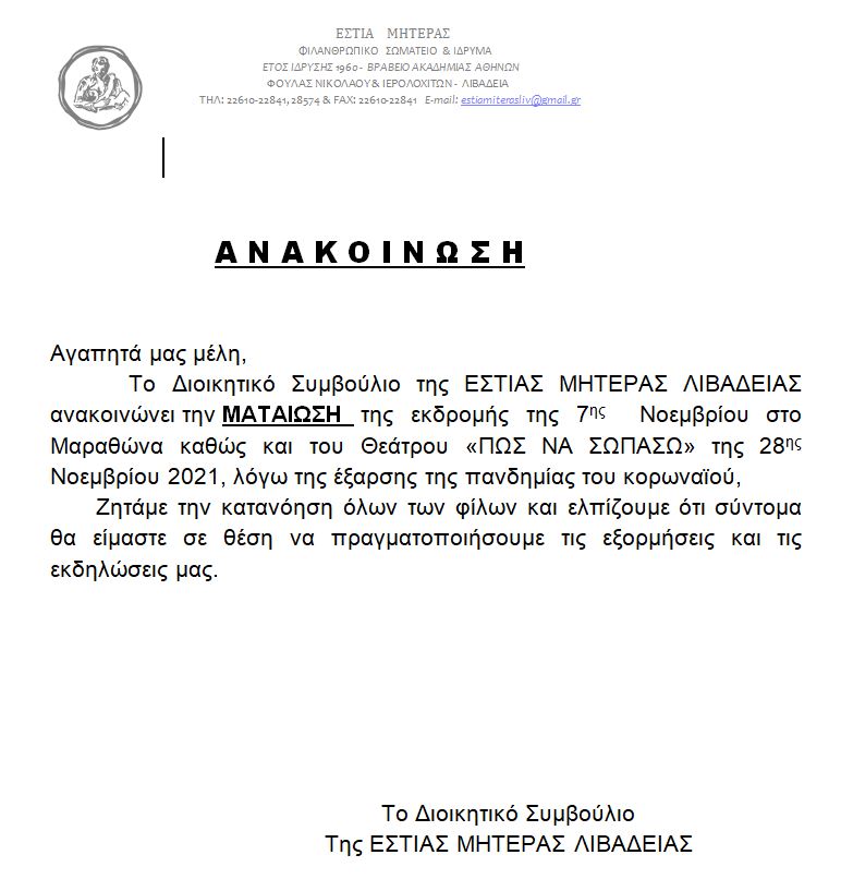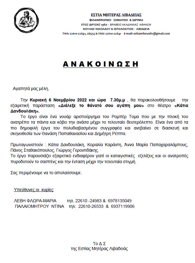 ΙΔΡΥΜΑ-ΣΩΜΑΤΕΙΟ ΛΙΒΑΔΕΙΑ |
